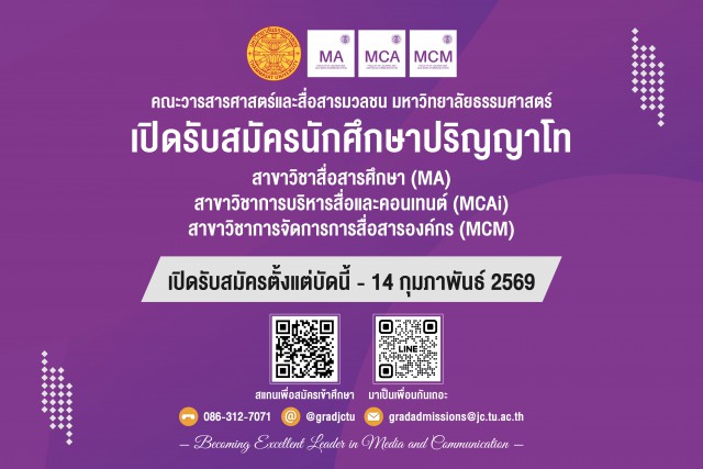 คณะวารสารศาสตร์และสื่อสารมวลชน มหาวิทยาลัยธรรมศาสตร์ เปิดรับสมัครนักศึกษาปริญญาเอก -สาขาวิชาสื่อและการสื่อสาร (Ph.D.) . เปิดรับสมัครตั้งแต่บัดนี้ ...