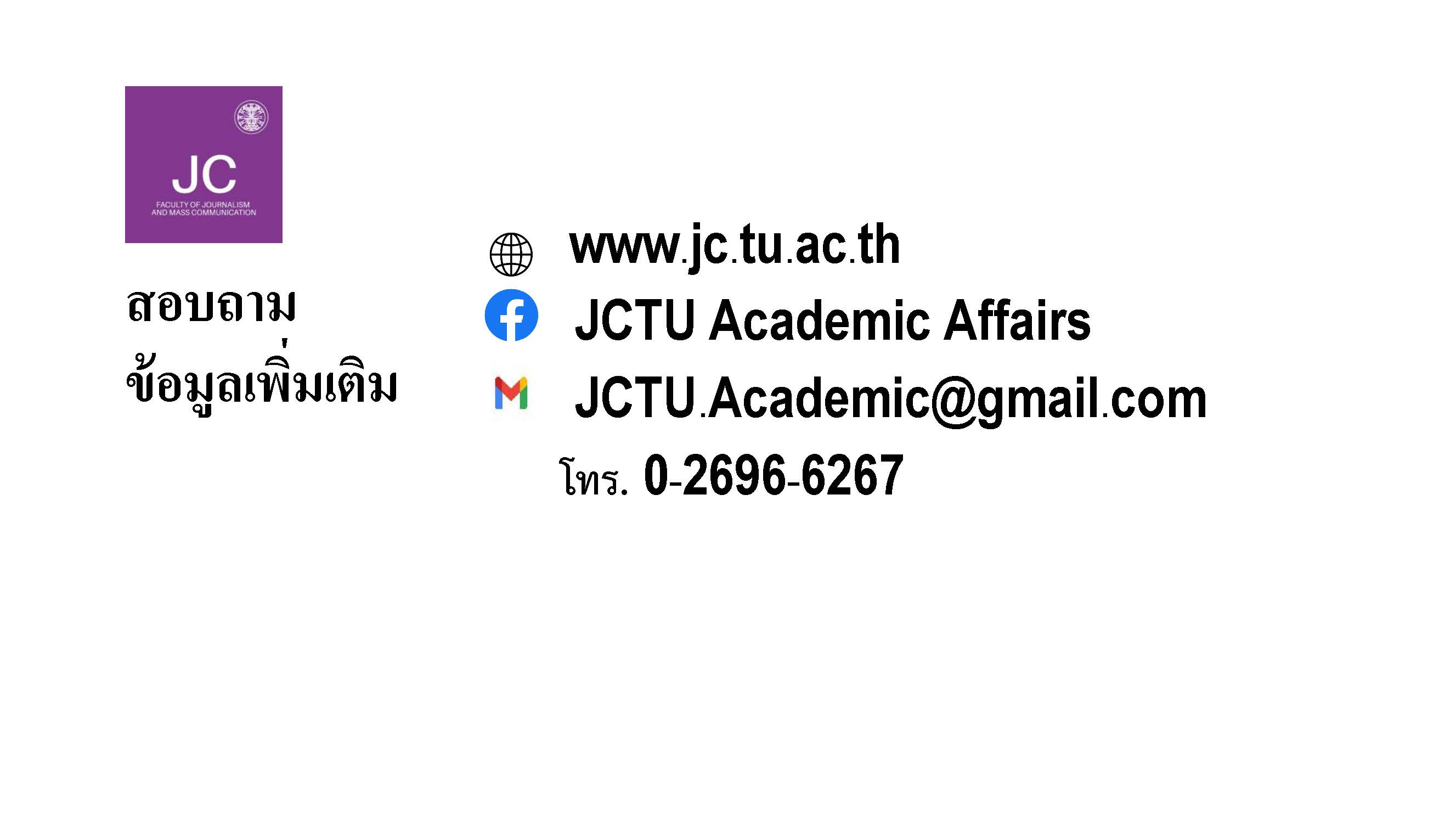 รายละเอียดการรับเข้าศึกษา คณะวารสารศาสตร์และสื่อสารมวลชน เพิ่มเติม