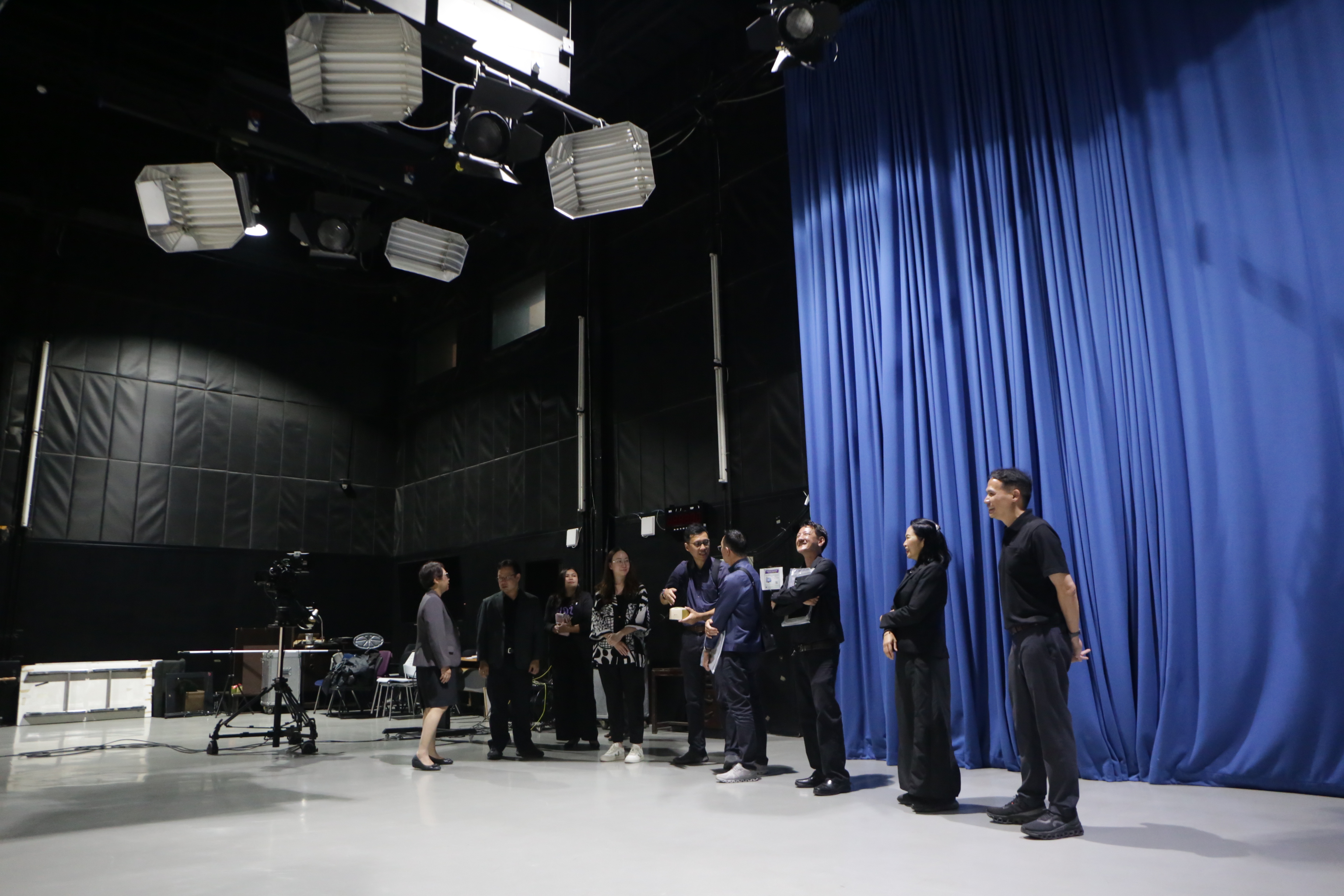 เมื่อวันที่ 12 พฤศจิกายน 2568 คณะผู้บริหารจากคณะการสื่อสารมวลชน มหาวิทยาลัยเชียงใหม่ เข้าศึกษาดูงานและแลกเปลี่ยนองค์ความรู้ด้านการบริการวิชาการและงานวิจัยกับคณะวารสารศาสตร์และสื่อสารมวลชน มหาวิทยาลัยธรรมศาสตร์ นำโดย ผศ.ดร.ศุภฤกษ์ โพธิไพรัตนา คณบดีคณะการสื่อสารมวลชน มหาวิทยาลัยเชียงใหม่ พร้อมด้วยคณะผู้บริหาร โดยมี ผศ.ดร.อัจฉรา ปัณฑรานุวงศ์ คณบดีคณะวารสารศาสตร์ฯ พร้อมด้วยคณะผู้บริหาร และเจ้าหน้าที่ ร่วมให้การต้อนรับ และนำชมห้องสตูดิโอ 1 อาคารปฏิบัติการสื่อสารมวลชน มหาวิทยาลัยธรรมศาสตร์ ศูนย์รังสิต